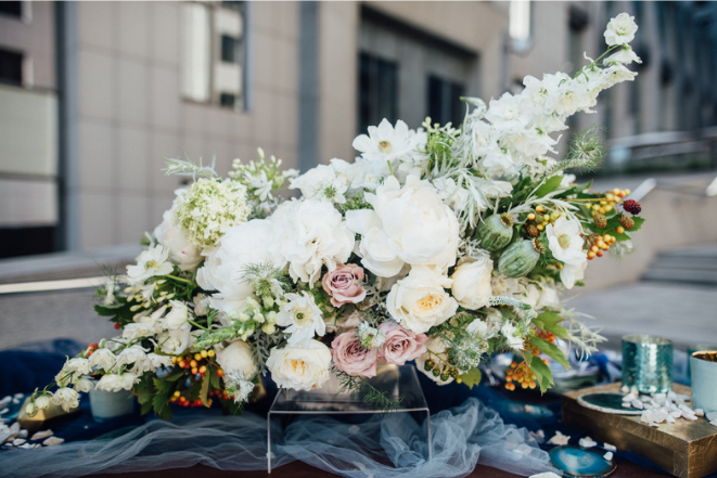 Designs start at $320 (compote arrangements or a combination of multiple smaller arrangements) and range to over $3000 (floral wall or extravagant extended table installation) depending on complexity and type of flowers used. Cynthia will give you a realistic price range during your discovery call.